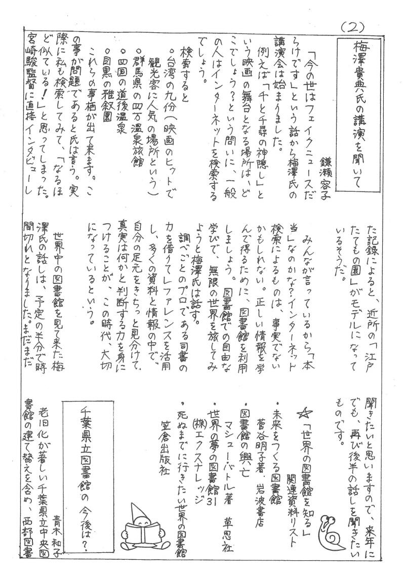 報告:青木和子 / 梅澤貴典氏の講演を聞いて 報告:鎌瀬容子