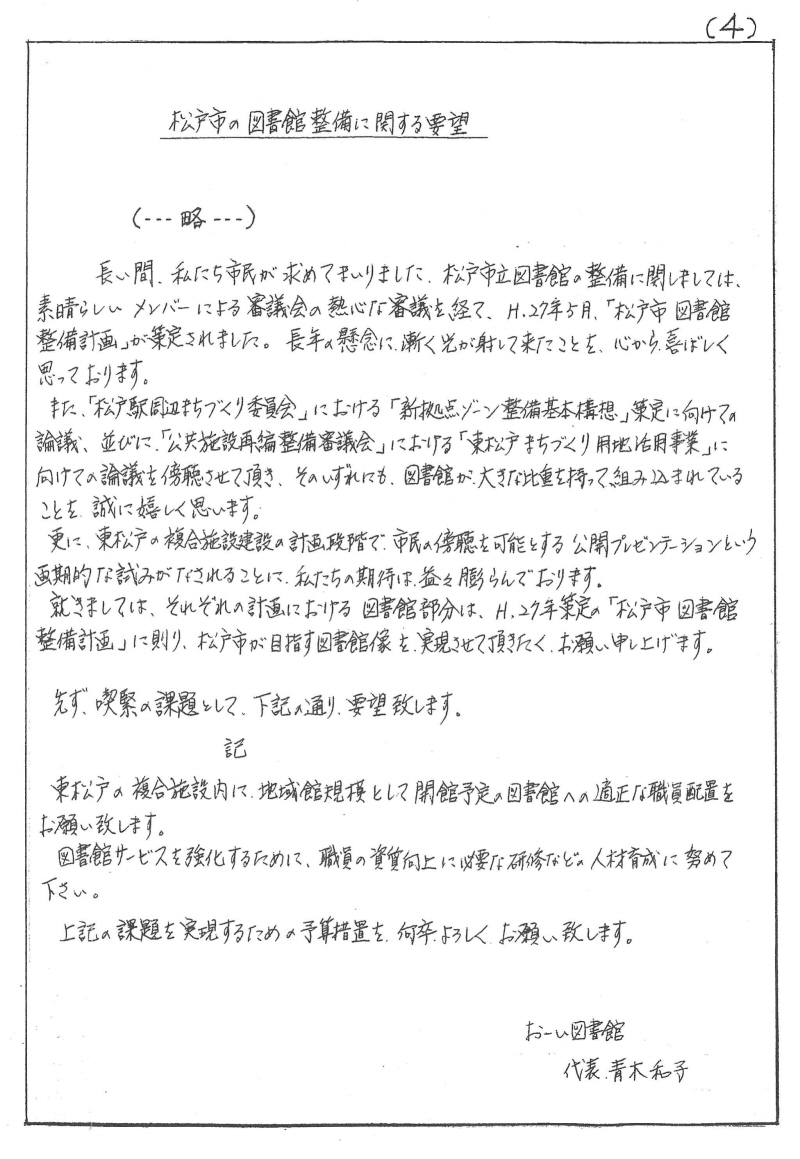 松戸市担当部署訪問 / 松戸市の図書館整備に関する要望(書)