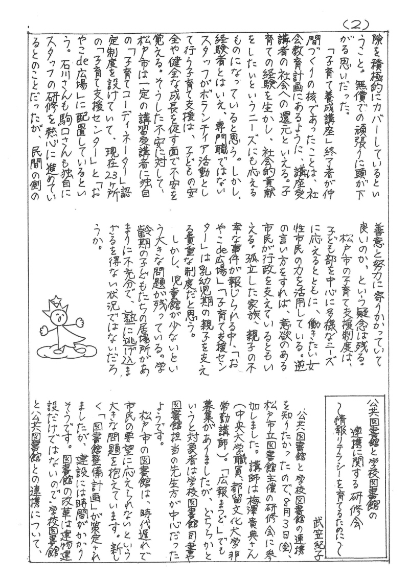 公共図書館と学校図書館の連携に関する研修会 ~情報リテラシーを育てるために~ 報告:武笠紀子