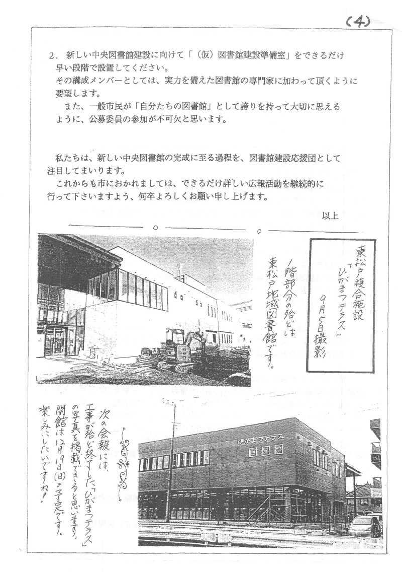 松戸市立中央図書館建設についての要望書